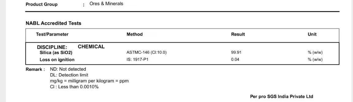 Quartz - Silica 99.91%